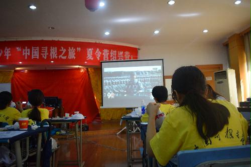 30日上午正是中国人民解放军建军90周年阅兵,课间,营员们在教室观看了阅兵直播。沙场点兵,气势磅礴,祖籍国气势日盛,在座的青少年们热血沸腾,自豪之气油然而生。