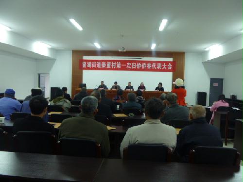 大会宣读了秦望村筹备此次归侨侨眷代表大会的工作报告,审议通过了《秦望村归国华侨联合会工作细则》(草案)和大会《选举办法》(草案),选举产生了秦望村侨联第一届委员会。经村侨联一届一次委员会议选举产生了社区侨联主席、副主席和秘书长。街道领导对侨联的成立表示热烈的祝贺,并就进一步做好街道侨联工作提出希望和要求。