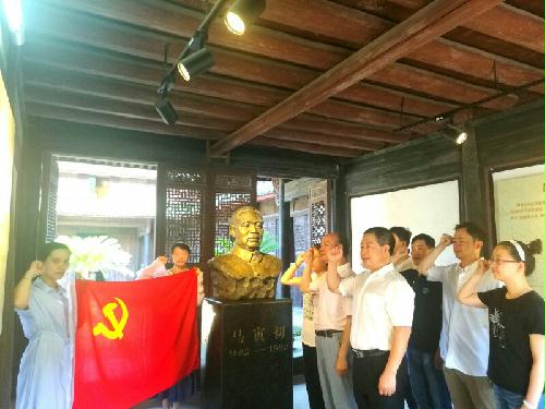 6月30日,市外侨办党总支举行“不忘初心,砥砺前行” “两学一做”学习教育暨纪念建党96周年主题党日活动。组织党员干部赴剿劣V类水挂联单位嵊州市鹿山街道新板头村参观剿劣成果,并参观浙江省爱国主义教育基地、浙江省廉政文化教育基地、浙江省党史教育基地---嵊州市马寅初纪念馆,并在马寅初纪念馆重温入党誓词。